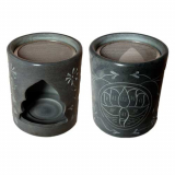 Specksteinstövchen, grau mit eingravierter Lotusblüte