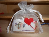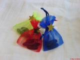 Die Tonkabohnen, je nach Größe 3 - 5 Stück, sind liebevoll in verschiedenfarbige Organzasäckchen verpackt und mit einem Stern verziert.